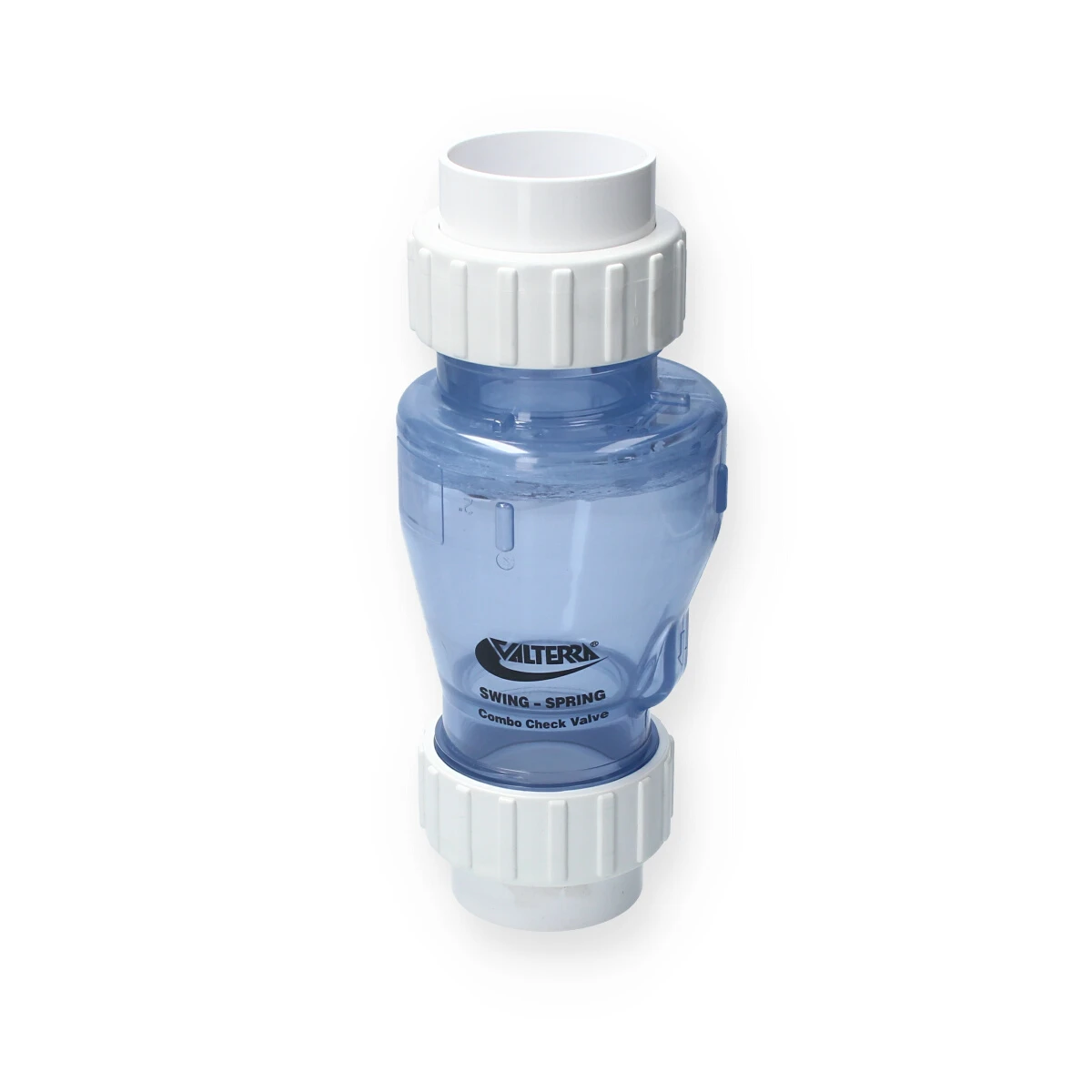 De 63mm terugslagklep van clear veer kan geplaatst worden vóór de zwembadpomp. Met behulp van de terugslagklep kan de zwembadpomp meer druk opbouwen omdat de klep naar één richting doorgang biedt. Hierdoor kan de pomp bijvoorbeeld zijn werk beter doen wanneer het water lager staat dan de pomp. De terugslagklep voor het zwembad werkt doormiddel van een veer die opent wanneer de minimale druk bereikt is. Wanneer de druk afneemt sluit de terugslagklep.