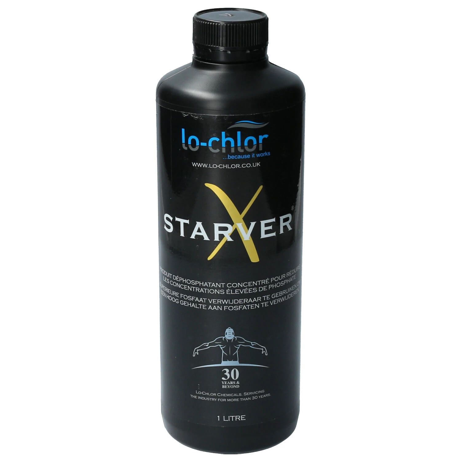 Lo-Chlor Starver X is een veilig en effectief superieur sterk fosfaat verwijderaar voor zwembaden. 1 liter Starver X verwijdert tot wel 6000ppb (6ppm – parts per million) aan fosfaten uit een 50.000 liter (50m3) zwembad. Starver X is een doeltreffende oplossing ontwikkeld om een hoog gehalte fosfaten te verwijderen. Gebruik je juiste dosering voor jouw zwembad, geef geen overdosis aan anti fosfaat.